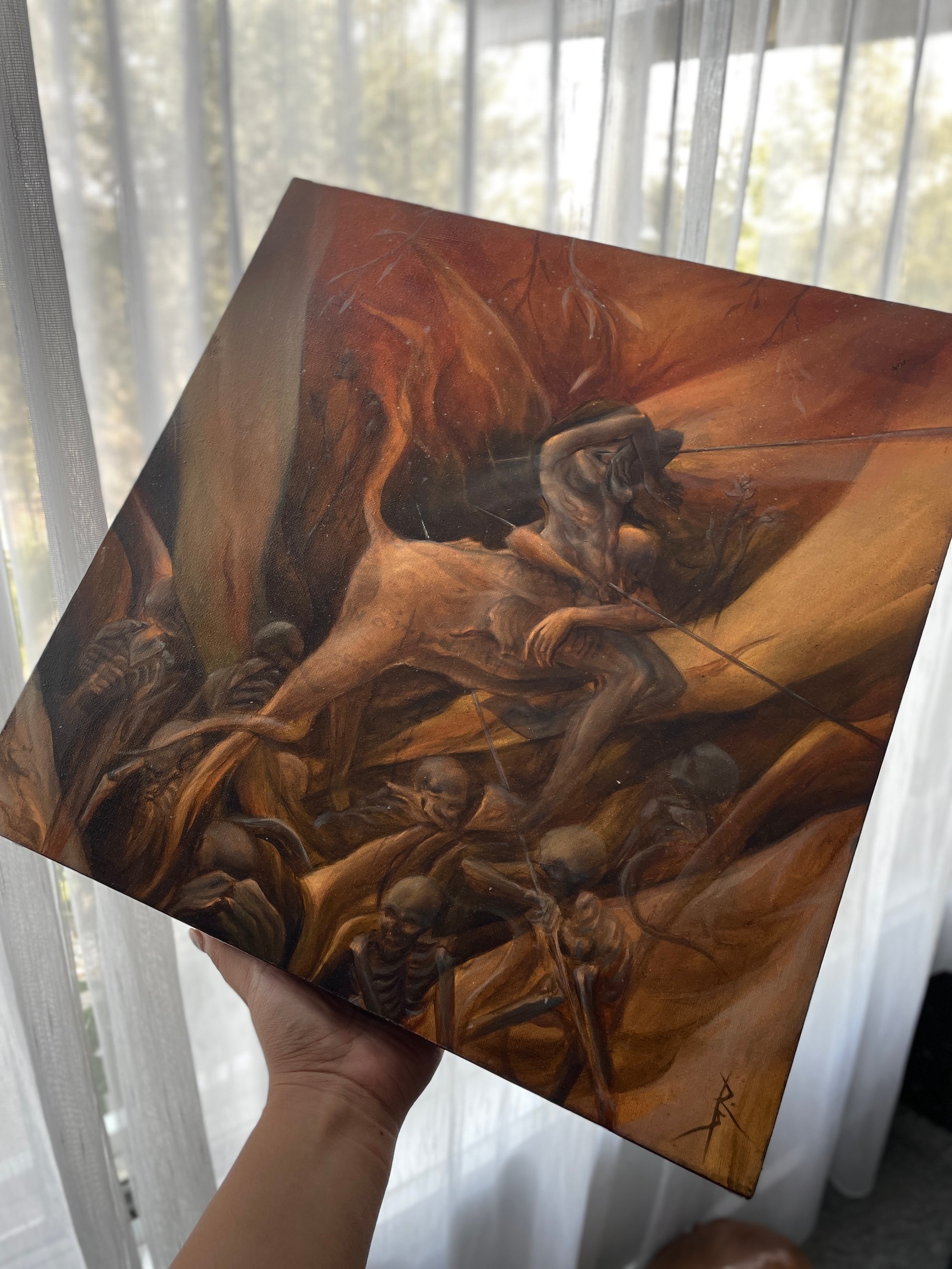 Varnished, unframed, signed and ready to hang.